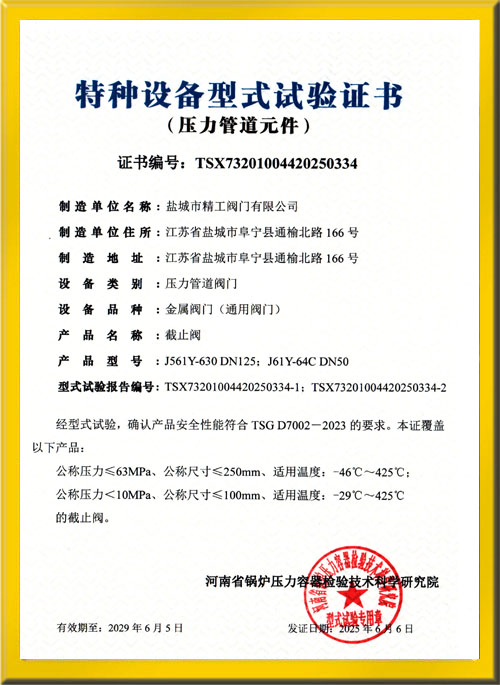 截止閥試驗證書