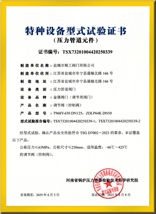 調(diào)節(jié)閥(控制閥)試驗證書